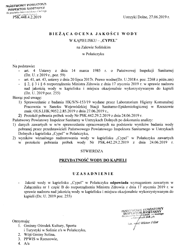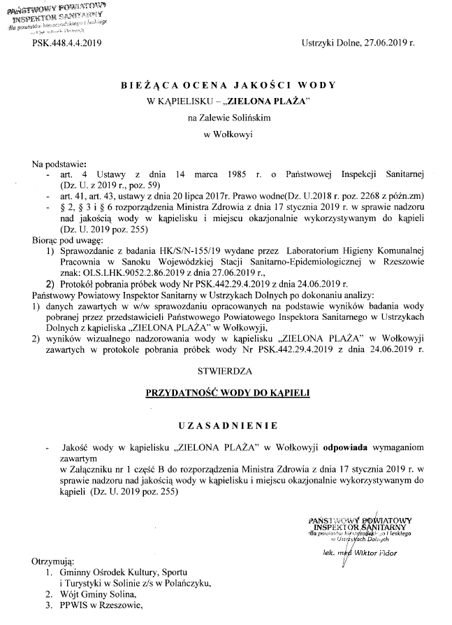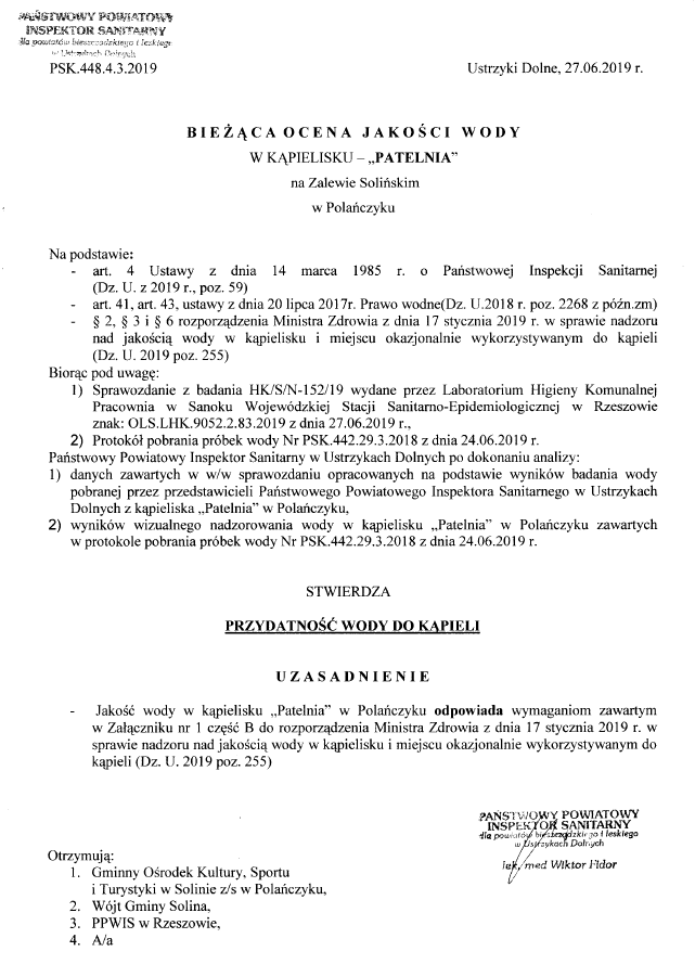 Gmina Solina Aktualności Bieżąca ocena jakości wody