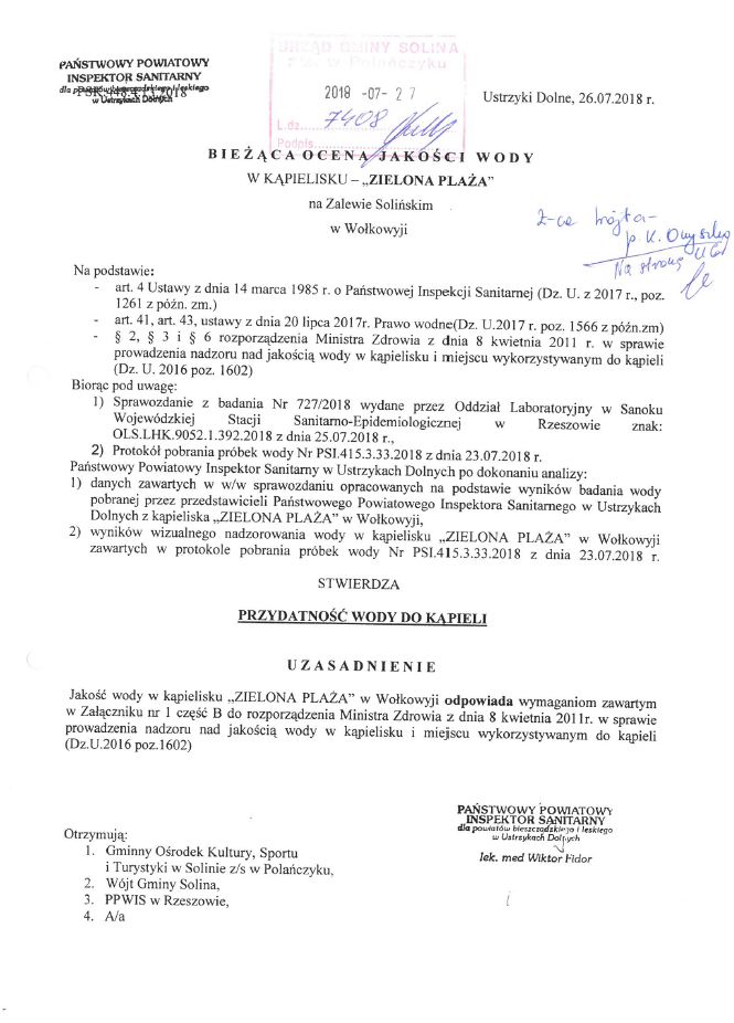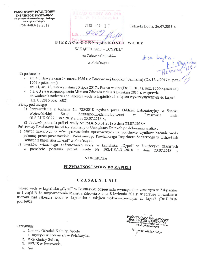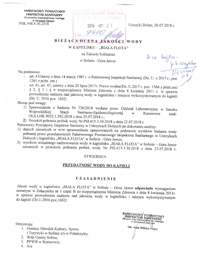 Gmina Solina Aktualności Bieżąca ocena jakości wody