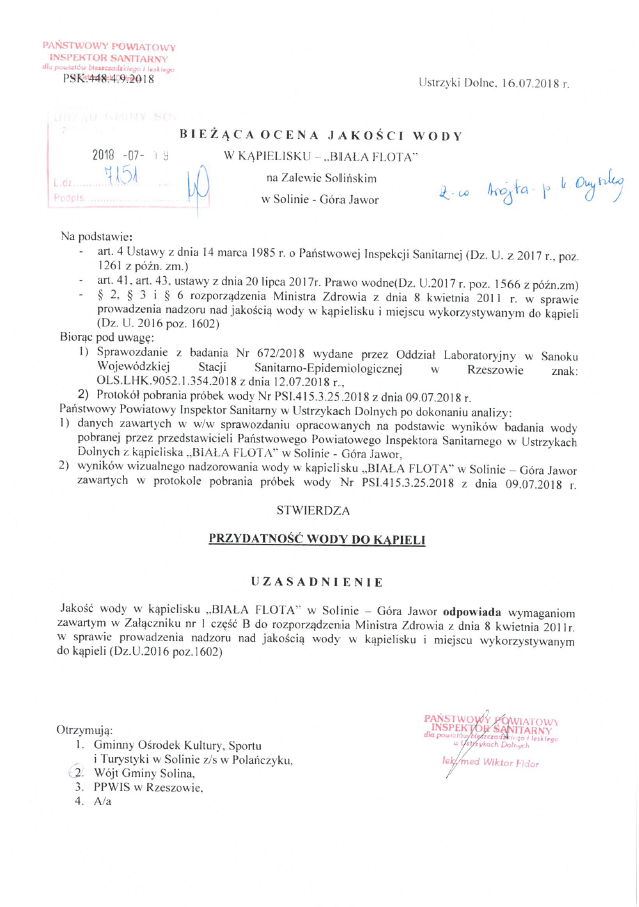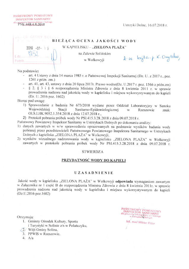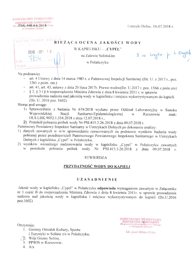 w kąpieliskach na terenie Gminy Solina