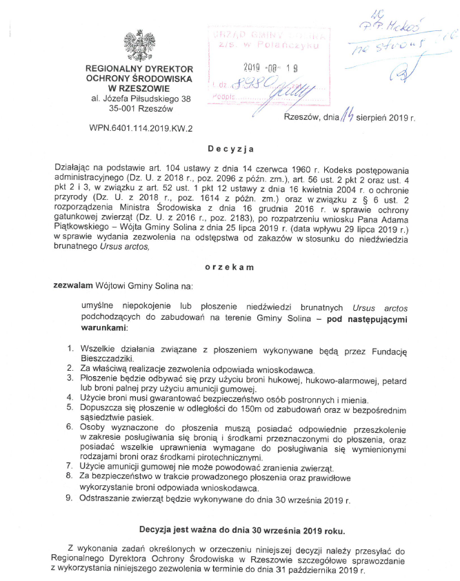 Decyzja Regionalnego Dyrektora Ochrony Środowiska w Rzeszowie