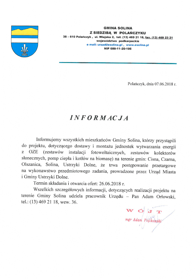 w sprawie projektu, dotyczącego dostawy i montażu jednostek wytwarzania energii z Odnawialnych Źródeł Energii