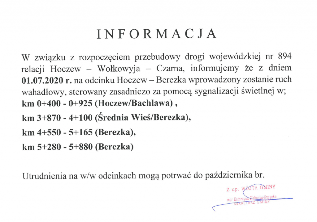 o utrudnieniach w ruchu na drodze wojewódzkiej nr 894