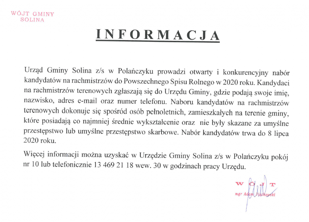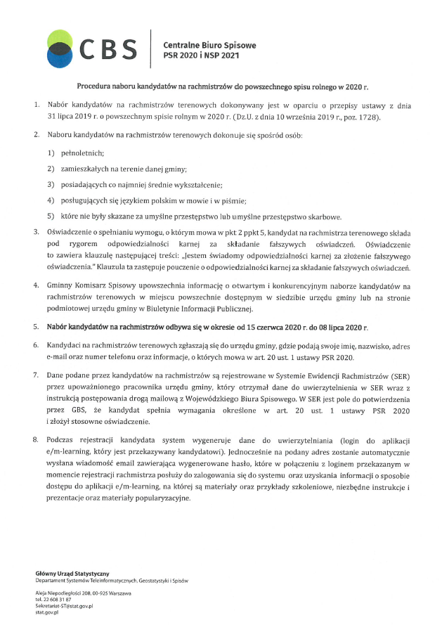 o naborze na rachmistrzów do Powszechnego Spisu Rolnego w 2020 r.