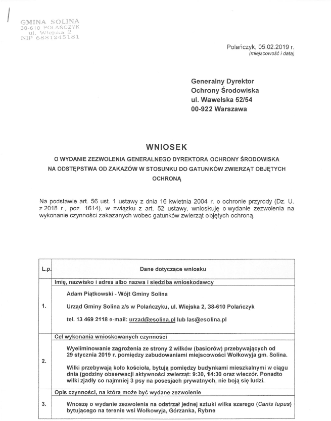 o wydanie zezwolenia Generalnego Dyrektora Ochrony Środowiska na odstępstwa od zakazów w stosunku do gatunków zwierząt objętych ochroną