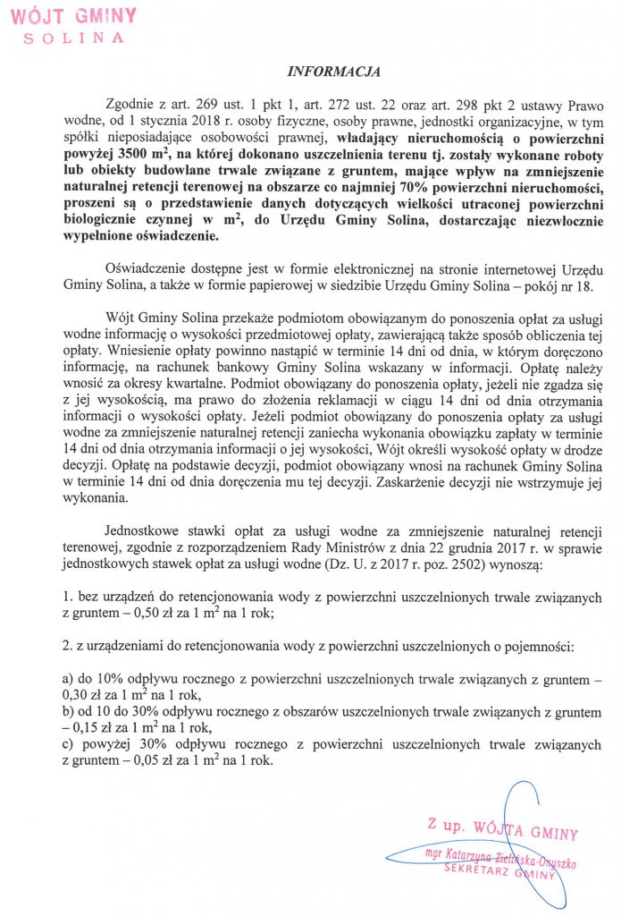 w sprawie opłat za usługi wodne – opłata za zmniejszenie naturalnej retencji