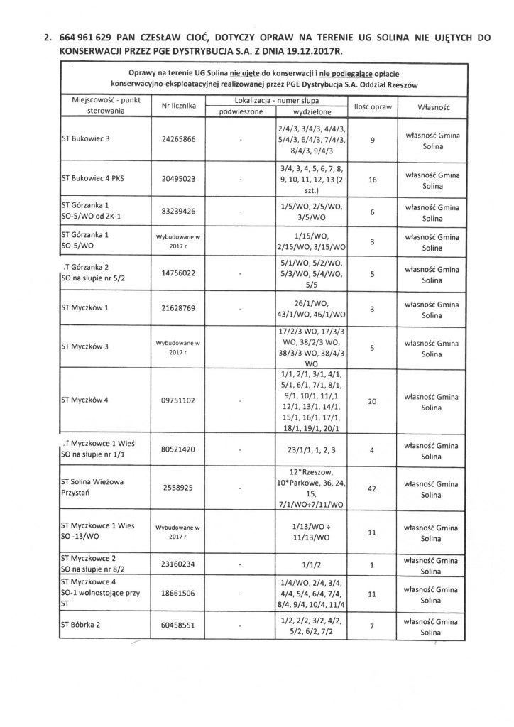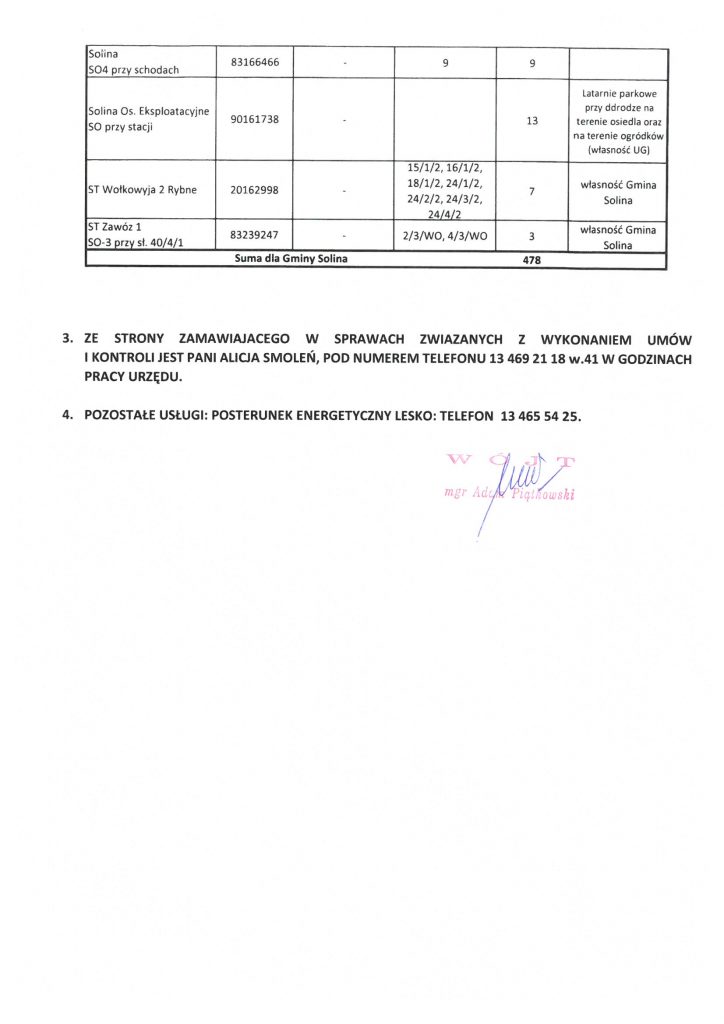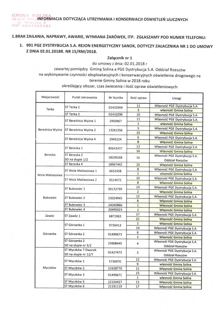 dotycząca utrzymania i konserwacji oświetleń ulicznych