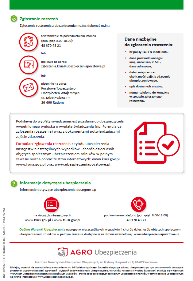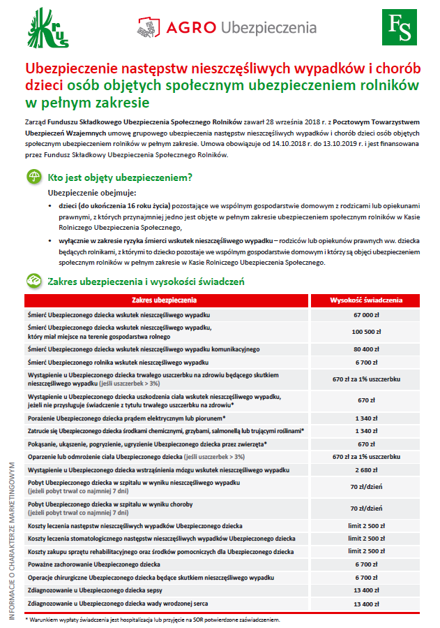 Ubezpieczenie następstw nieszczęśliwych wypadków i chorób dzieci osób objętych społecznym ubezpieczeniem rolników w pełnym zakresie