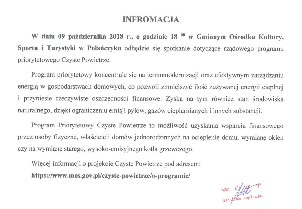 o spotkaniu dotyczącym rządowego programu priorytetowego „Czyste Powietrze”