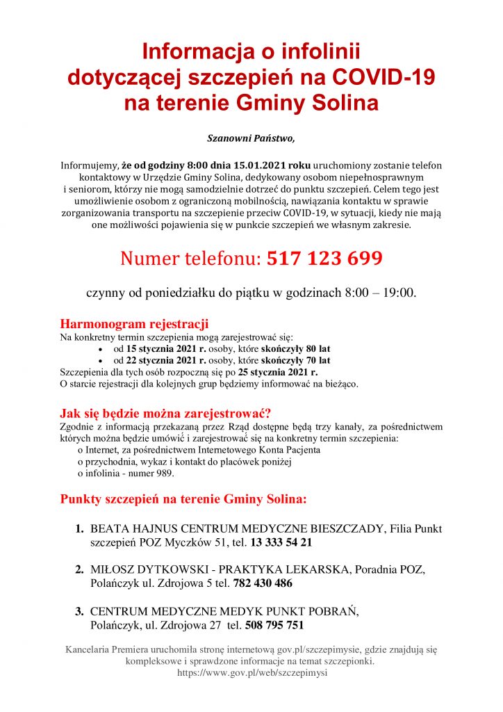 dotyczącej szczepień na COVID-19 na terenie Gminy Solina