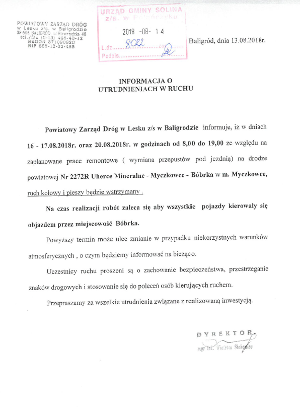 Informacja o utrudnieniach w ruchu