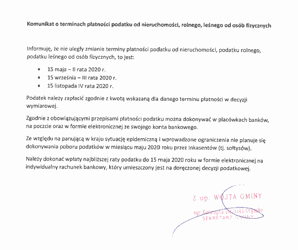 o terminach płatności podatku od nieruchomości, rolnego, leśnego od osób fizycznych
