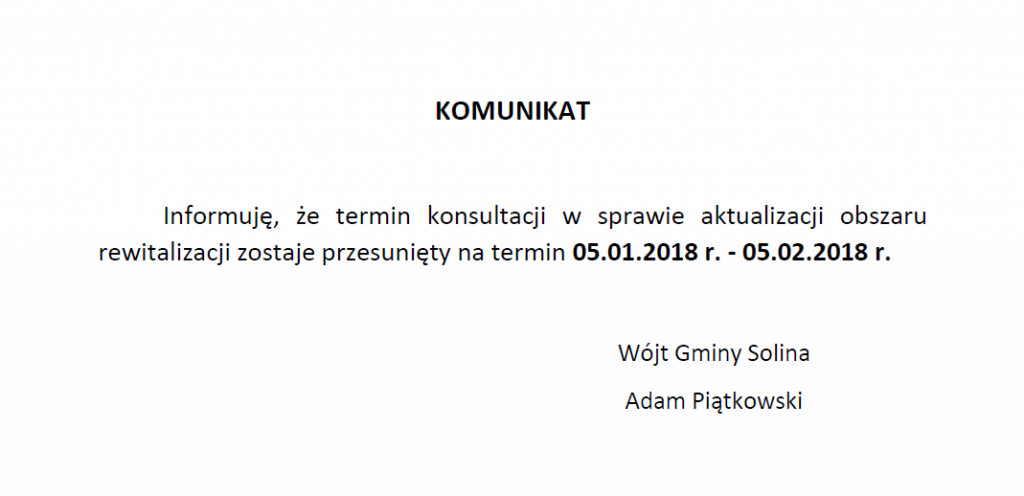 w sprawie przesunięcia terminu konsultacji społecznych dotyczących aktualizacji obszaru rewitalizacji