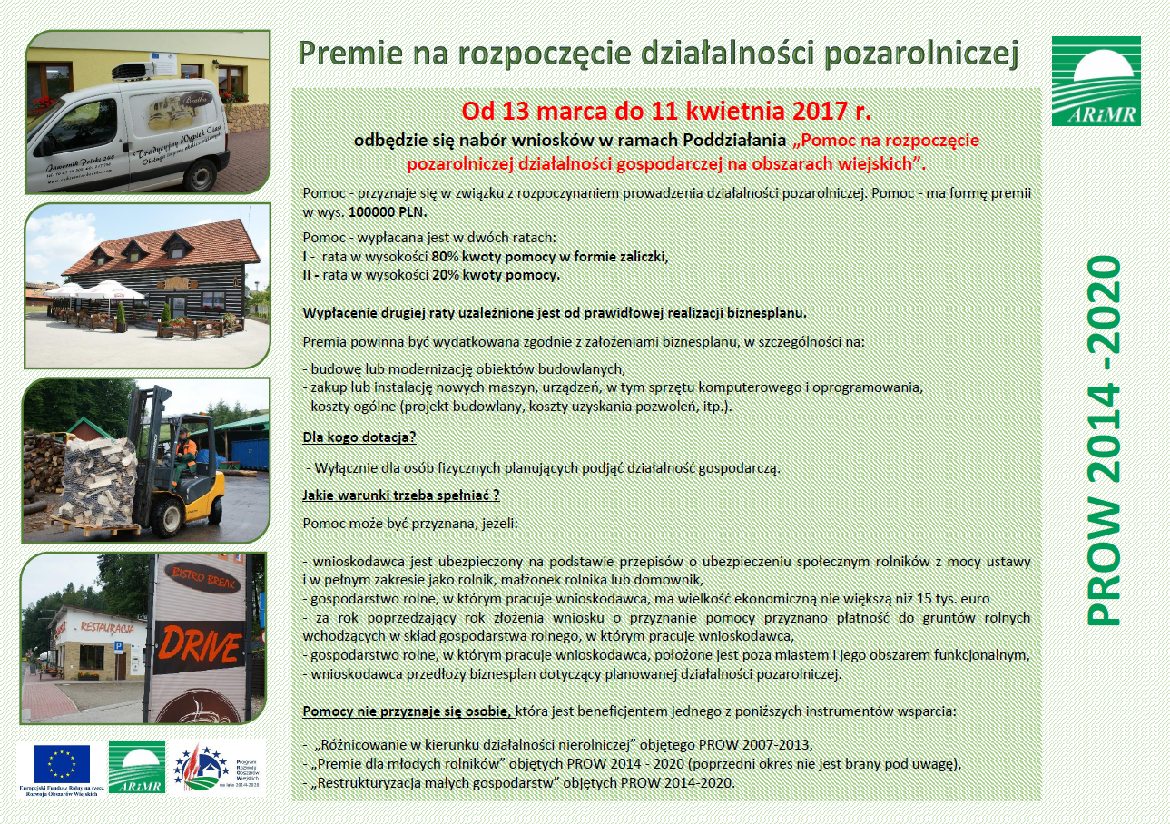 Informacja dotycząca naboru wniosków w ramach Poddziałania „Pomoc na rozpoczęcie pozarolniczej działalności gospodarczej na obszarach wiejskich”