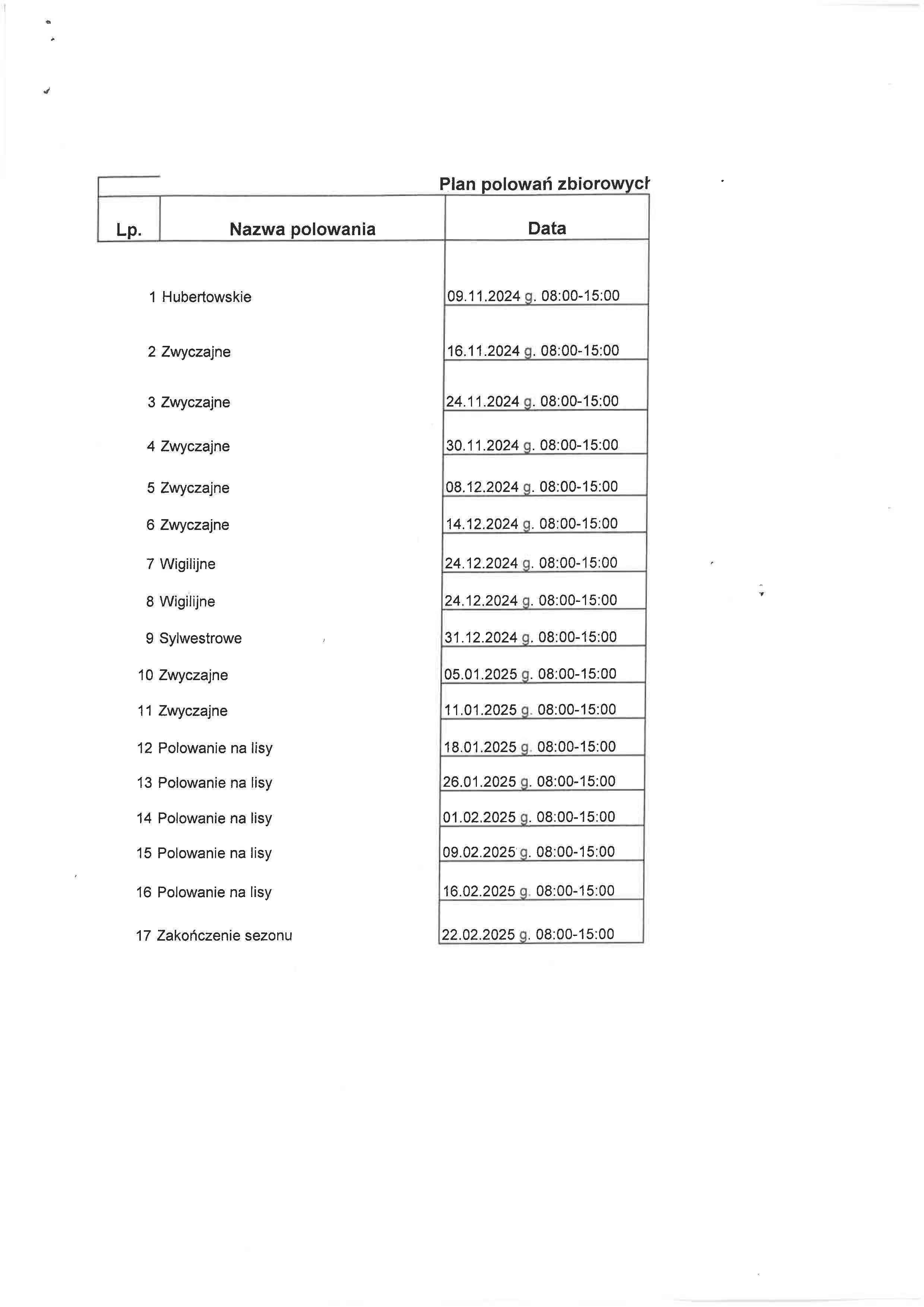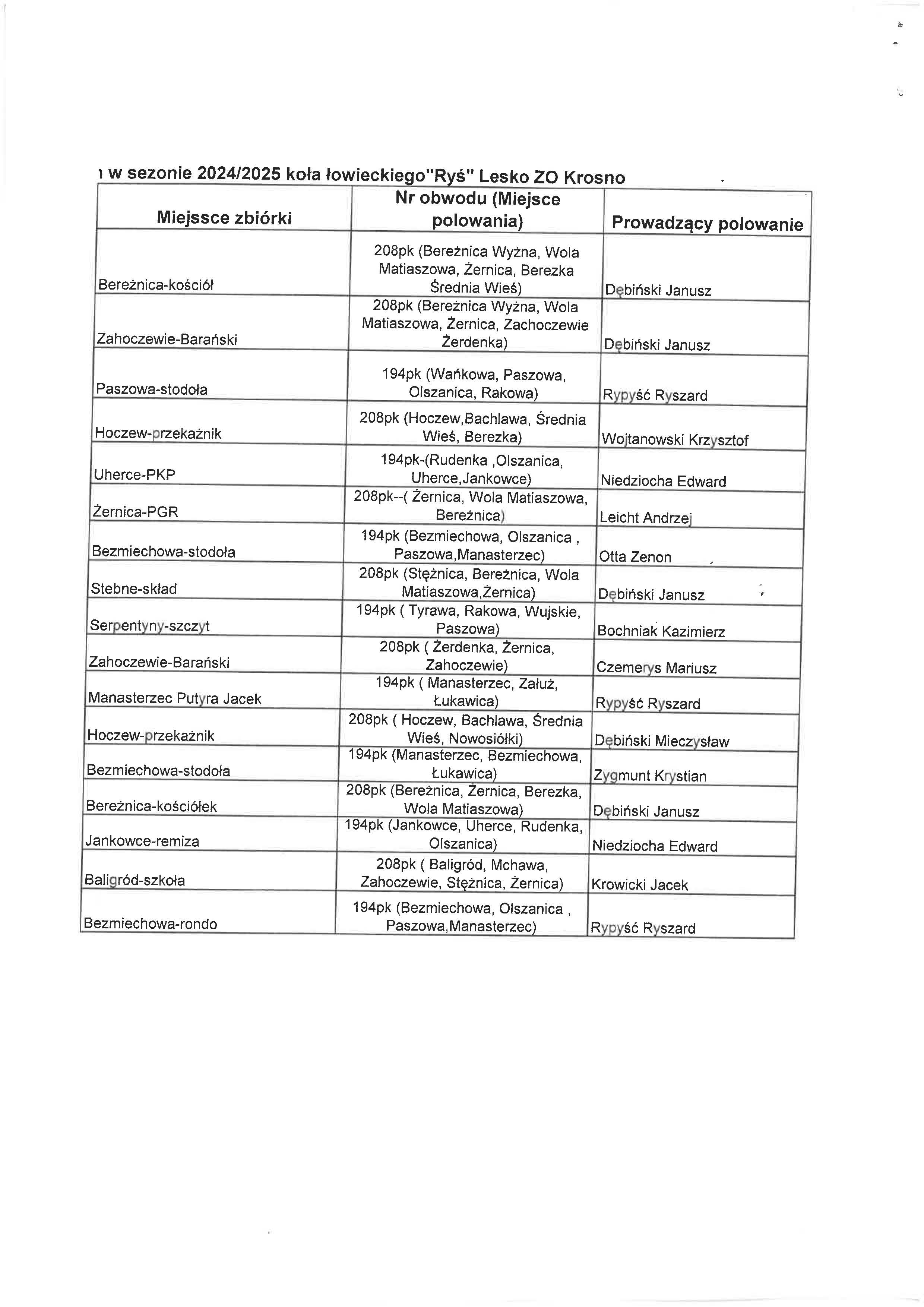 Obwieszczenie o planowanych polowaniach na terenie Gminy Solina przez Wojskowe Koło Łowieckie „RYŚ” Lesko