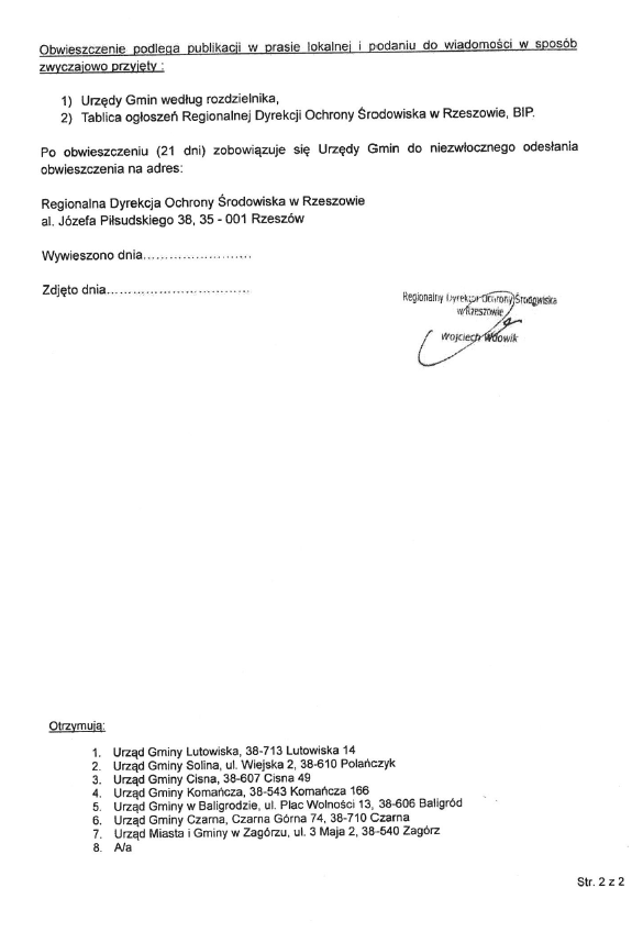 Obwieszczenie Regionalnego Dyrektora Ochrony Środowiska w Rzeszowie