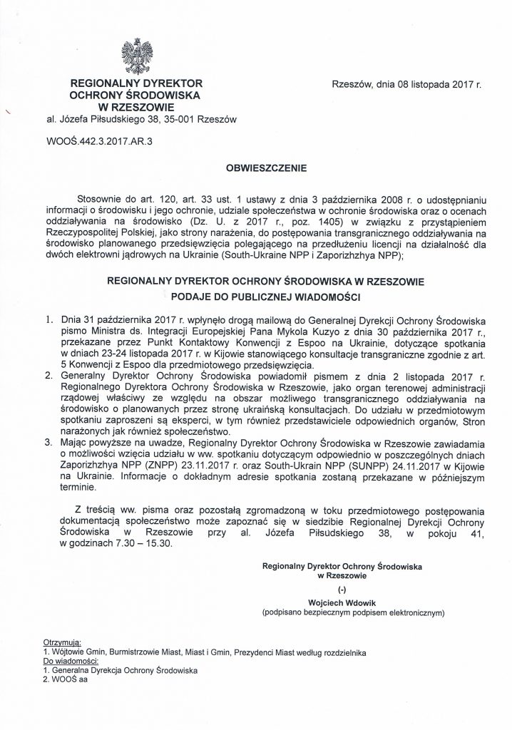 Obwieszczenie Regionalnego Dyrektora Ochrony Środowiska w Rzeszowie