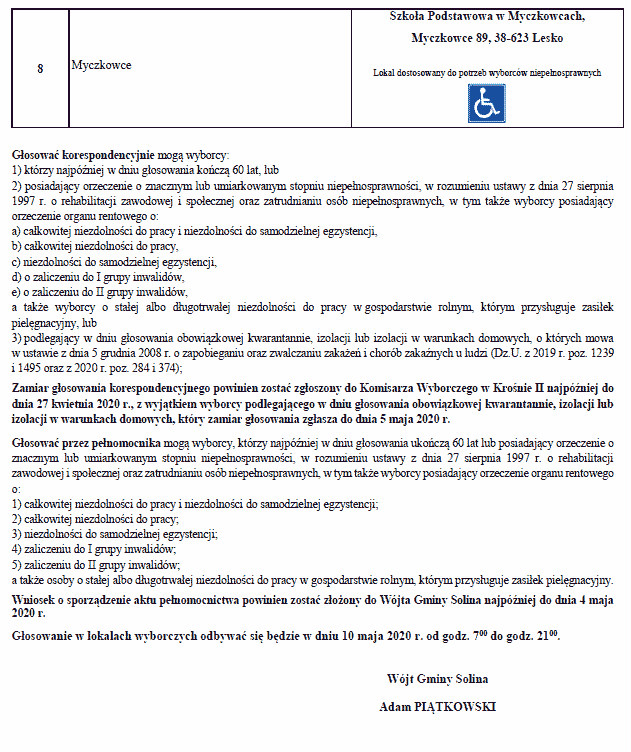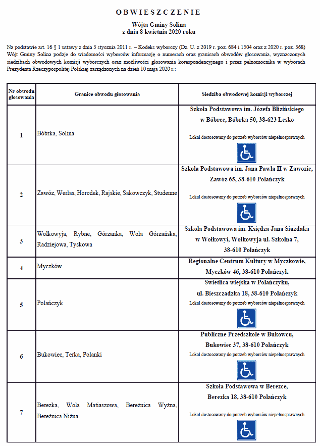 o numerach oraz granicach obwodów głosowania, wyznaczonych siedzibach obwodowych komisji wyborczych oraz możliwości głosowania korespondencyjnego i przez pełnomocnika w wyborach Prezydenta Rzeczypospolitej Polskiej zarządzonych na dzień 10 maja 2020 r.