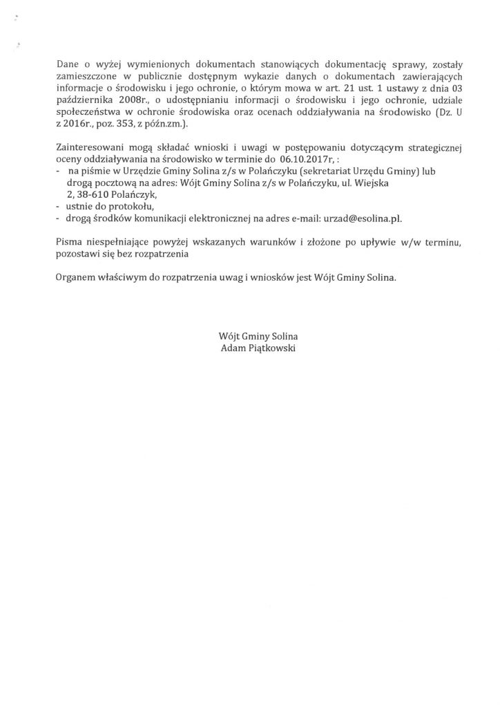Obwieszczenie Wójta Gminy Solina z dnia 24 sierpnia 2017 r.