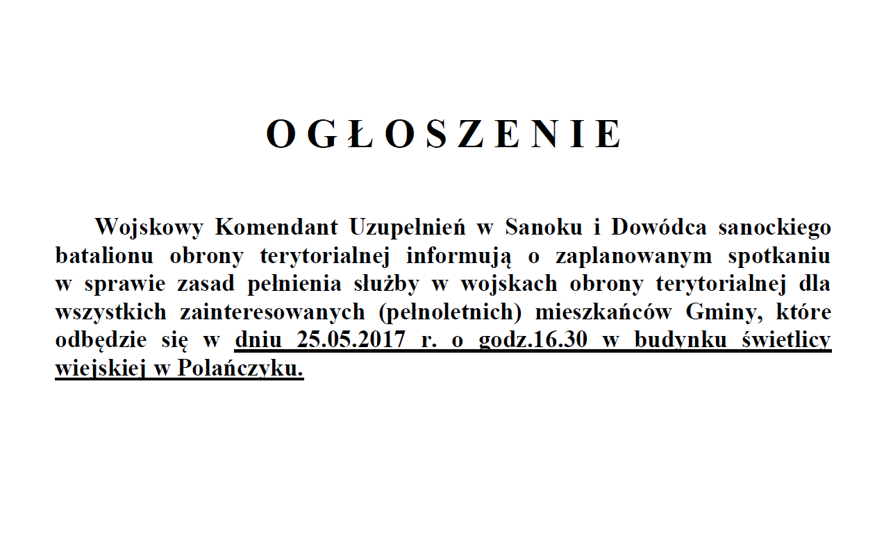 o spotkaniu w sprawie zasad pełnienia służby w wojskach obrony terytorialnej dla wszystkich zainteresowanych