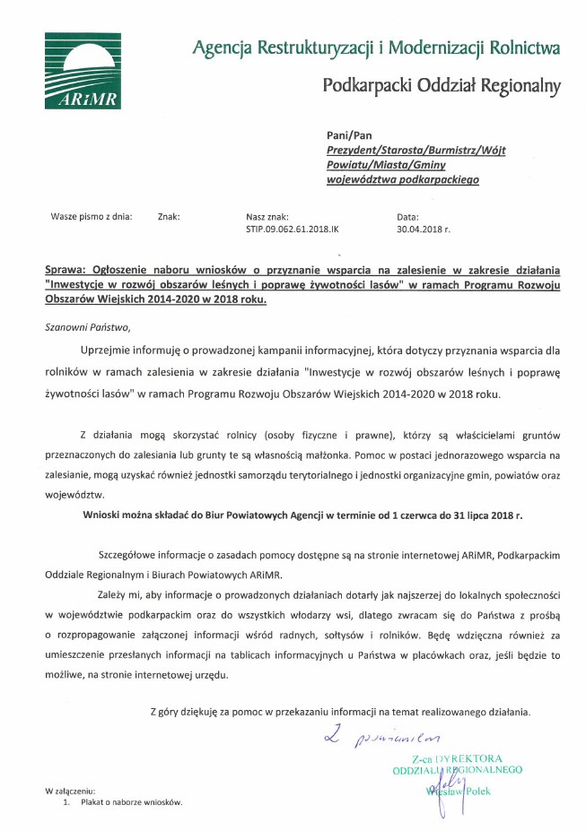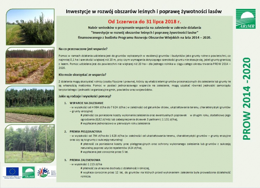 o przyznanie wsparcia na zalesienie w zakresie działania „Inwestycje w rozwój obszarów leśnych i poprawę żyzności lasów”