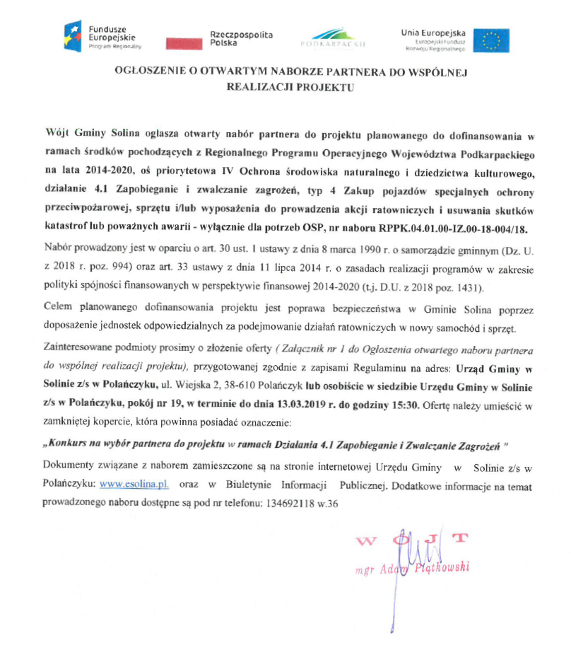 Ogłoszenie o otwartym naborze partnera do wspólnej realizacji projektu