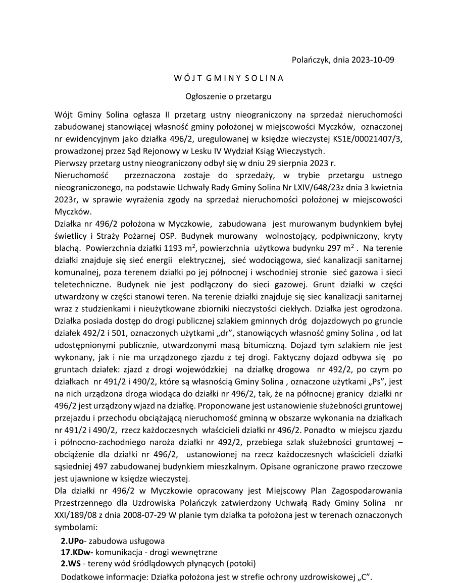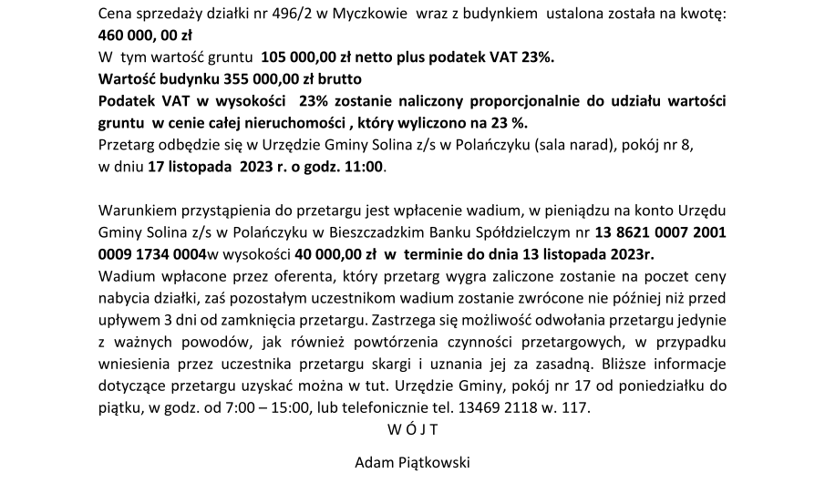 Obwieszczenie Wójta Gminy Solina z dnia 24 stycznia 2025 r.