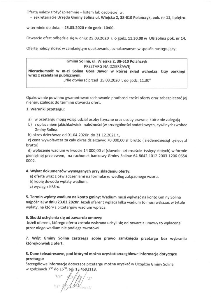 | Informacja o złożonych ofertach w przetargach na dzierżawę nieruchomości gminnych z dnia 25.03.20202 |