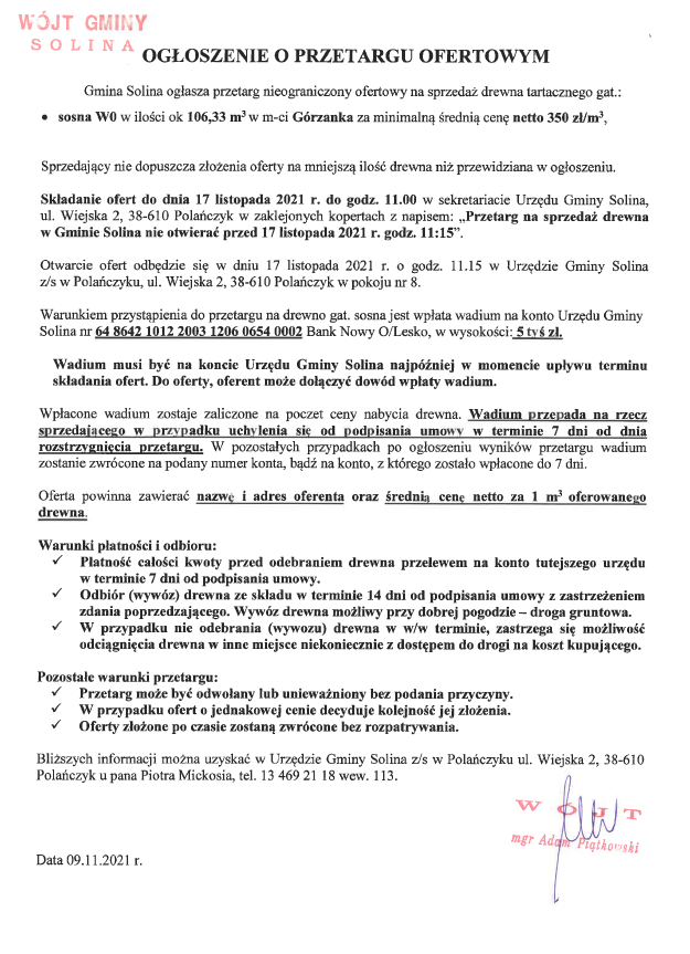 Obwieszczenie Wójta Gminy Solina z dnia 24 stycznia 2025 r.