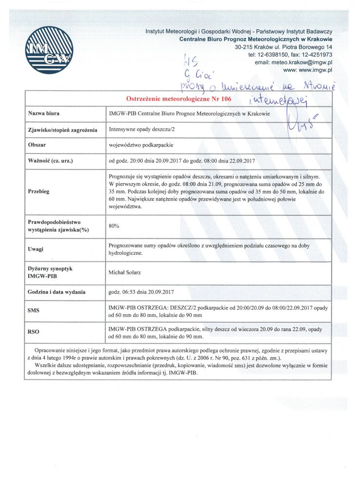 Gmina Solina Aktualności Ostrzeżenie meteorologiczne