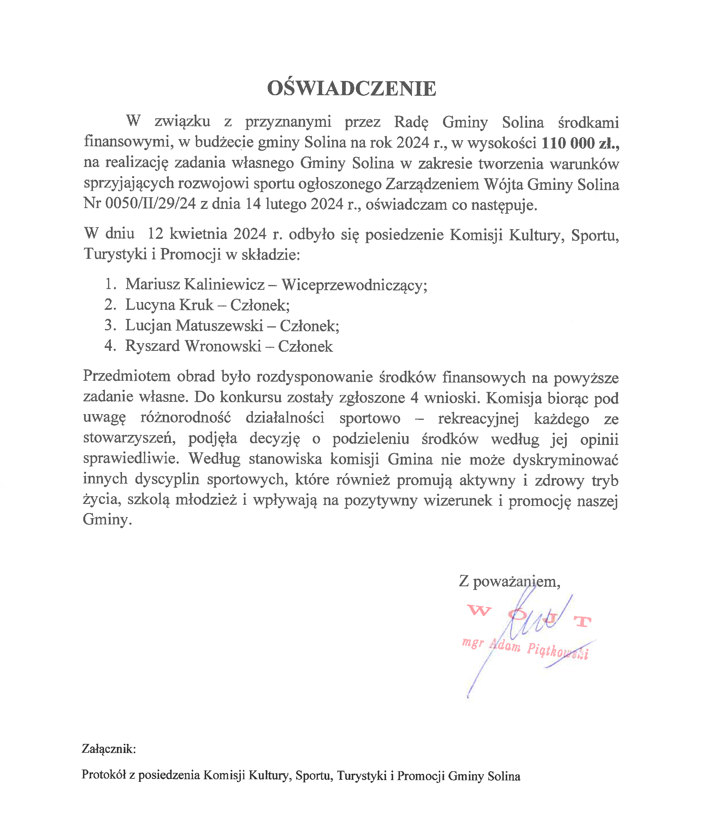 Obwieszczenie Wójta Gminy Solina z dnia 24 stycznia 2025 r.
