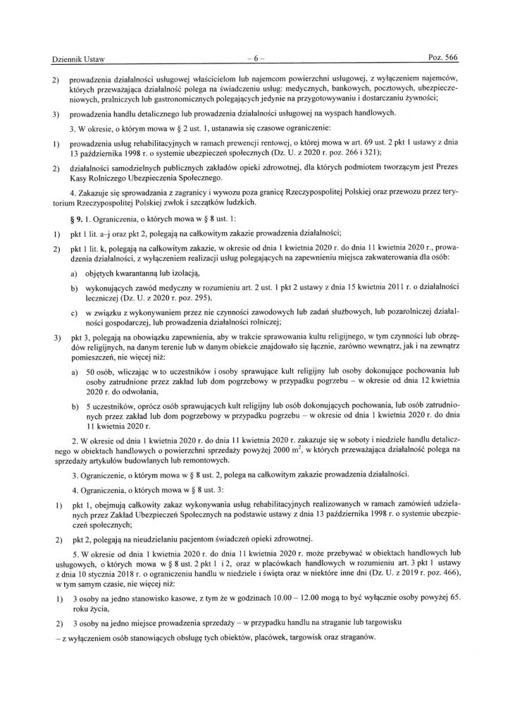 w sprawie ustanowienia określonych ograniczeń, nakazów i zakazów w związku z wystąpieniem stanu epidemii
