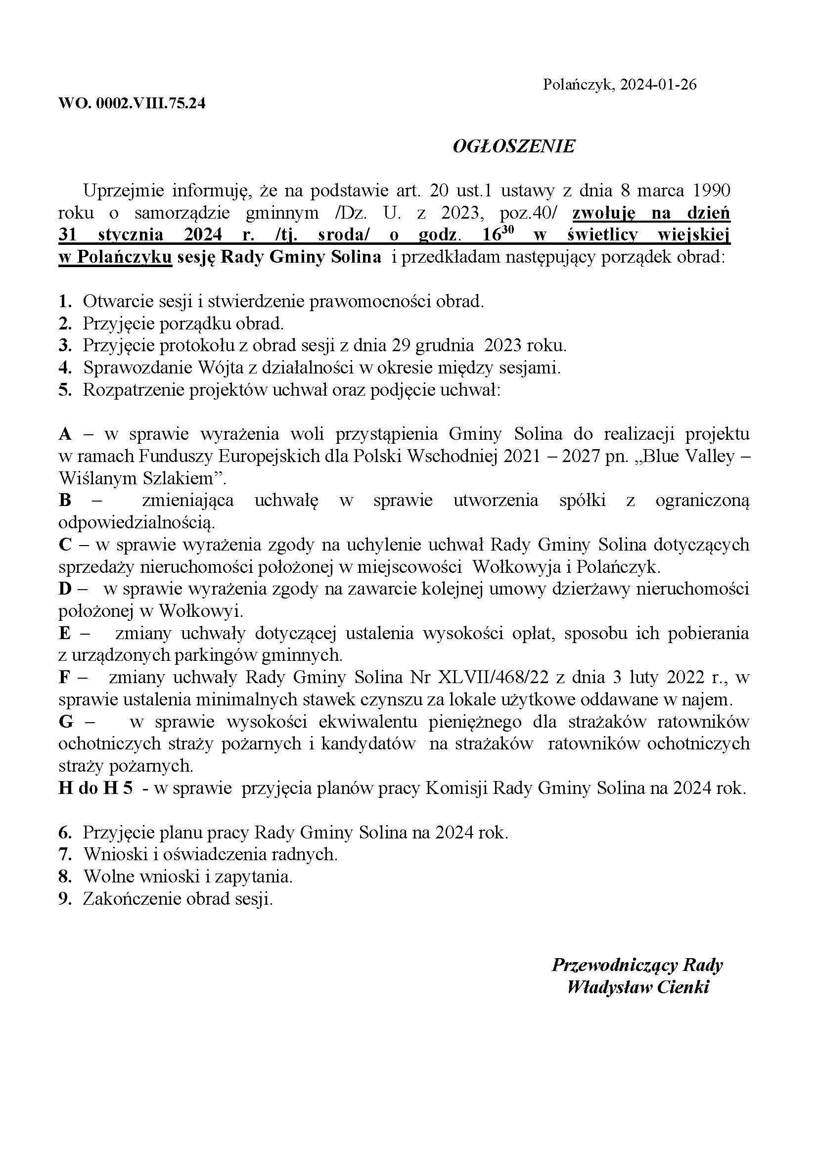 Gmina Solina Aktualności Sesja Rady Gminy Solina
