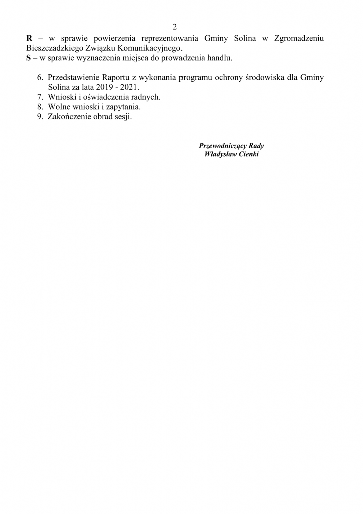 Ogłoszenie o zwołaniu na dzień 7 czerwca 2022 roku sesji Rady Gminy Solina