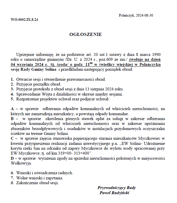 Gmina Solina Aktualności Sesja Rady Gminy Solina