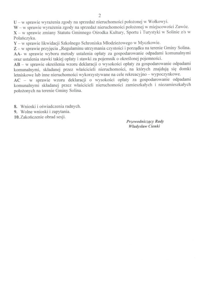 Ogłoszenie o zwołaniu na dzień 6 maja 2020 roku Sesji Rady Gminy Solina