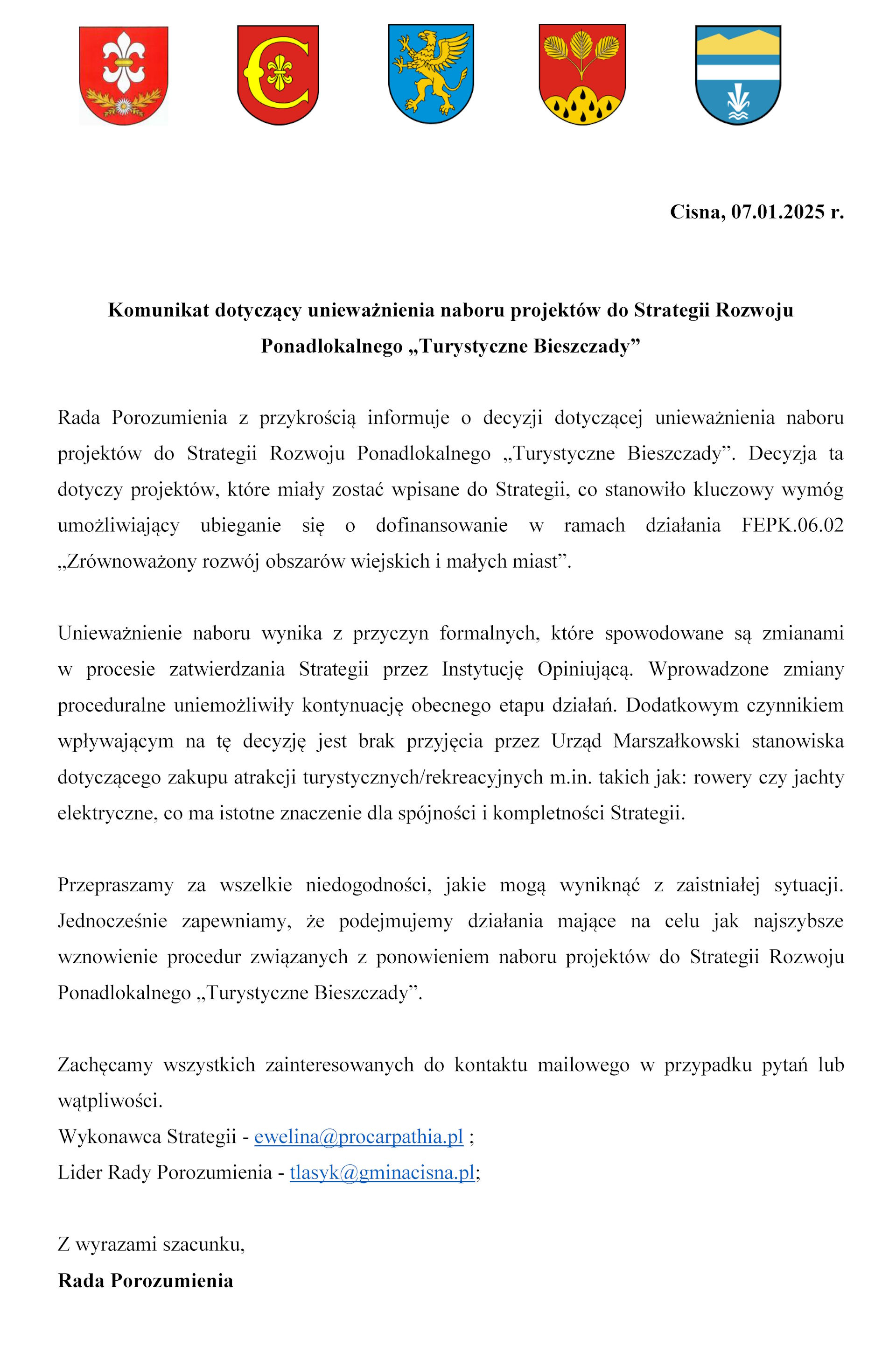 Unieważnienie naboru projektów do Strategii Rozwoju Ponadlokalnego
