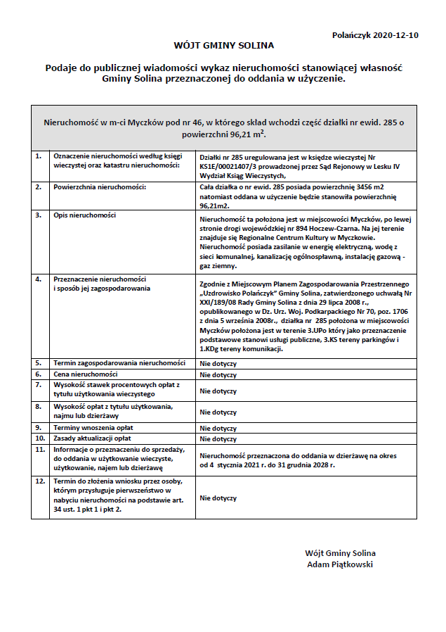 Obwieszczenie Wójta Gminy Solina z dnia 24 stycznia 2025 r.