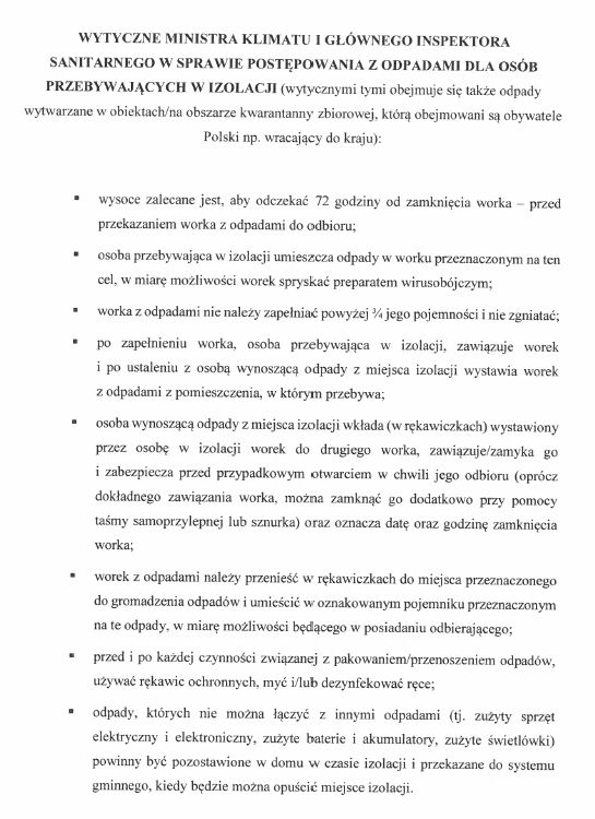 w sprawie postępowania z odpadami dla osób przebywających w izolacji (kwarantannie)