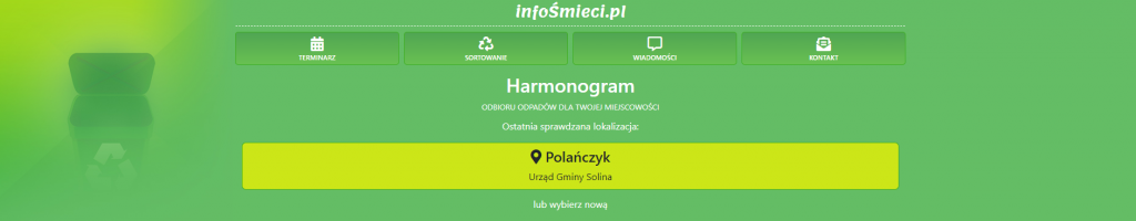 Bezpłatny dostęp do aktualnego terminarza wywozu odpadów oraz dodatkowe informacji dodatkowych.