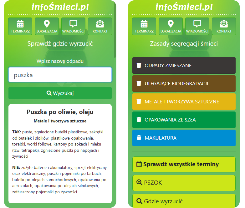 Aplikacja InfoŚmieci.pl to darmowy harmonogram odbioru śmieci oraz informacje o zasadach sortowania odpadów, a także terminarz i powiadomienia o dacie odbioru odpadów.