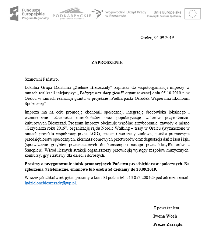 do współorganizacji imprezy w ramach realizacji inicjatywy: „Połączą nas dary ziemi”
