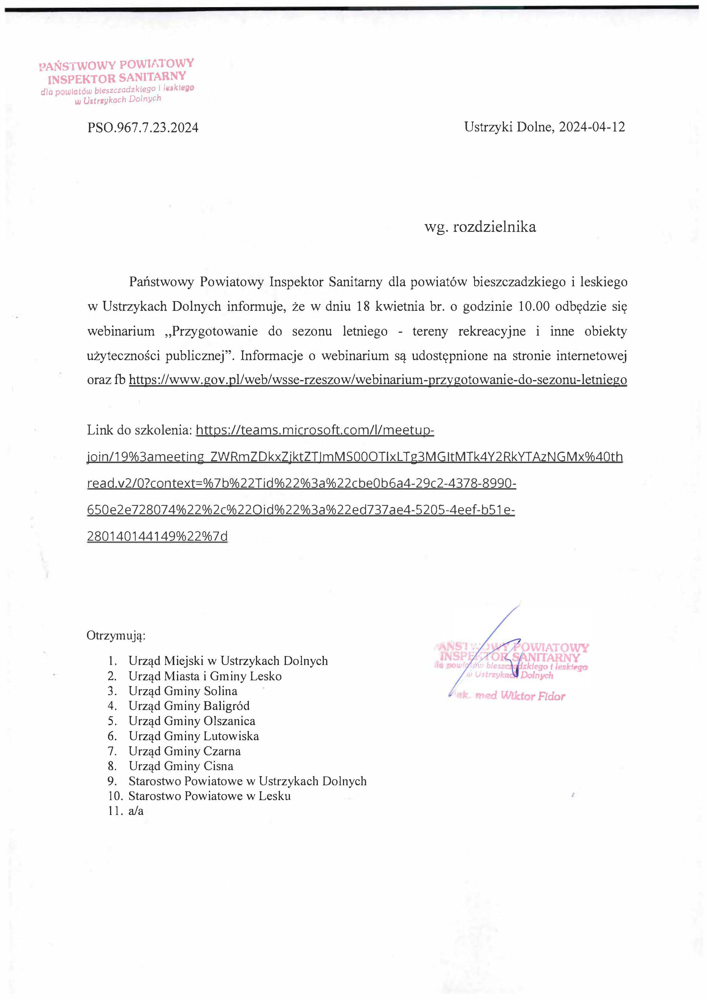 Zaproszenie na webinarium „Przygotowanie do sezonu letniego – tereny rekreacyjne i inne obiekty użyteczności publicznej”