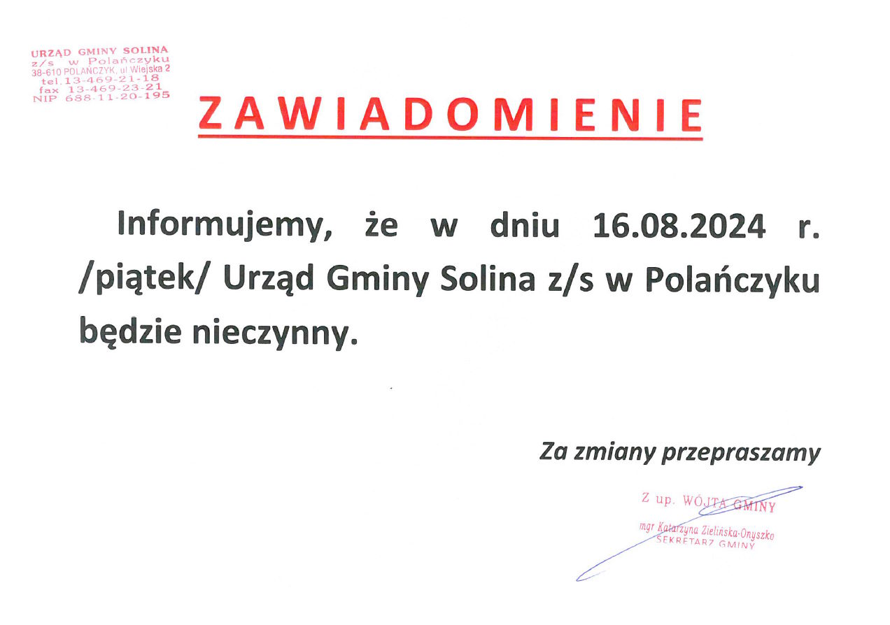 Obwieszczenie Wójta Gminy Solina z dnia 24 stycznia 2025 r.