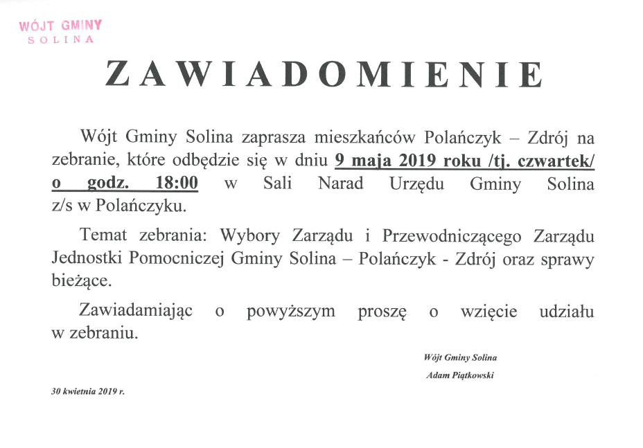 o zebraniu mieszkańców Osiedla Polańczyk-Zdrój