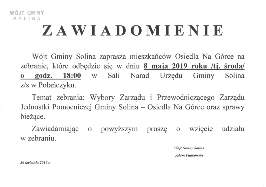 o zebraniu mieszkańców Osiedla na Górce w Polańczyku
