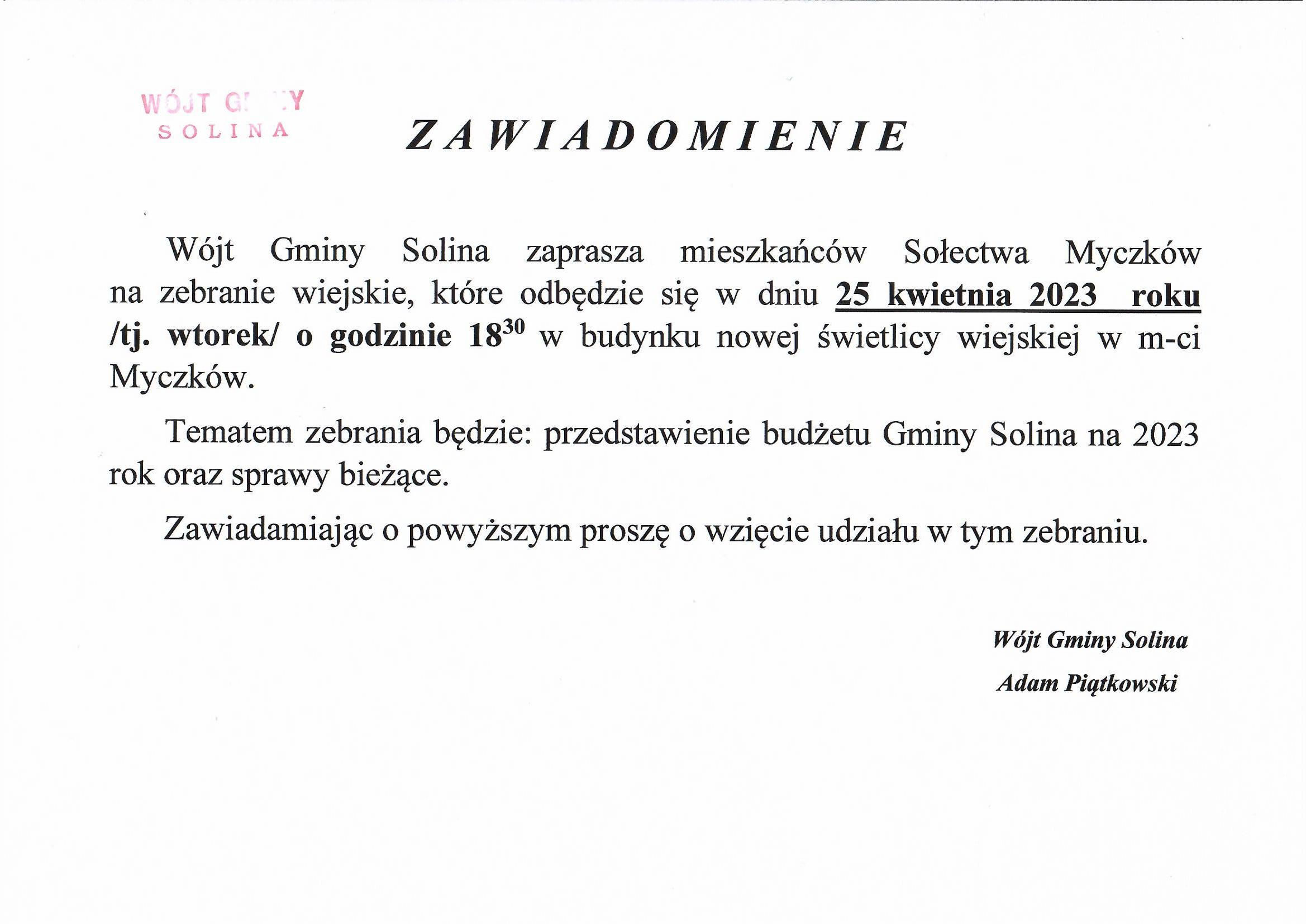 Obwieszczenie Wójta Gminy Solina z dnia 24 stycznia 2025 r.