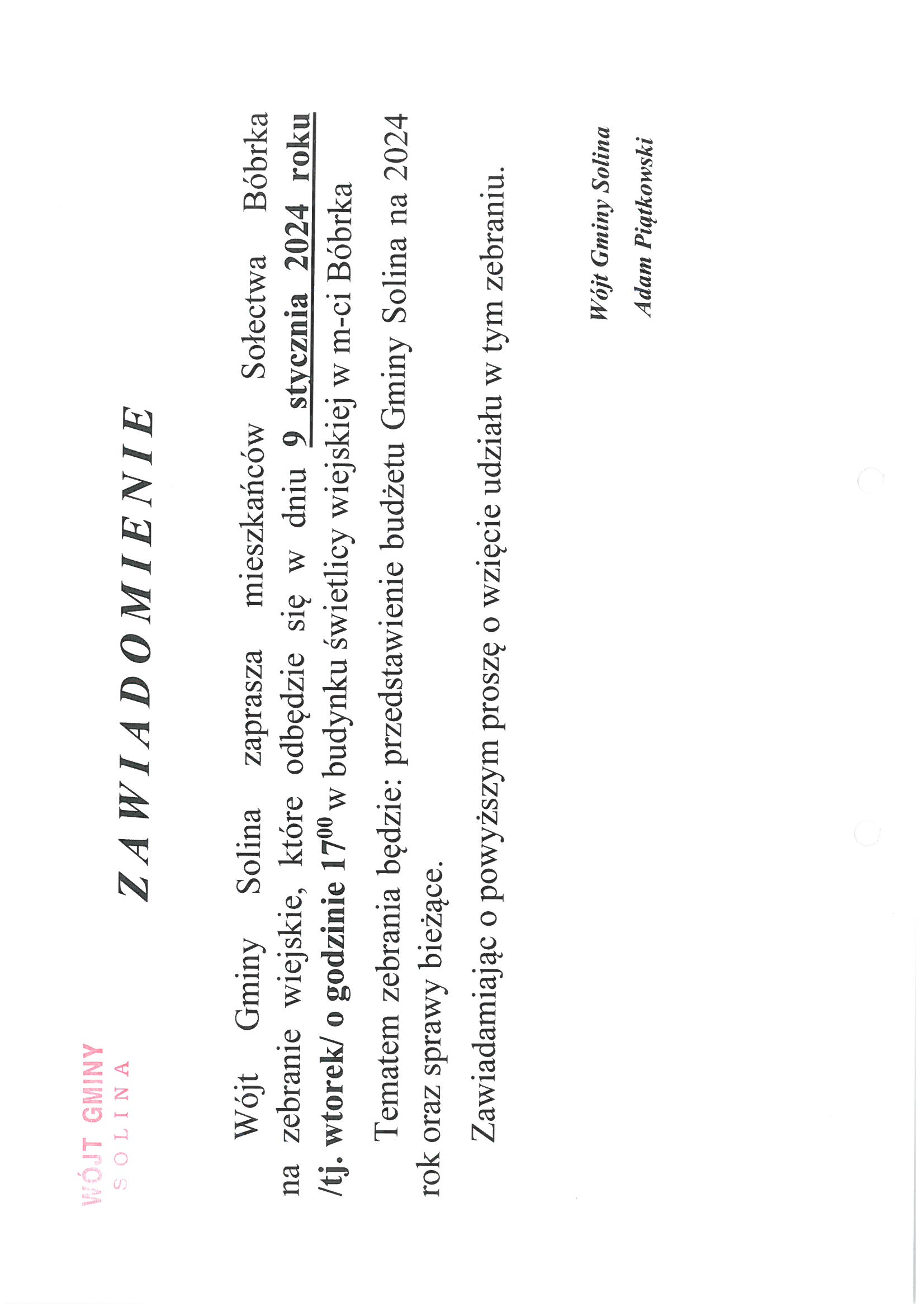 Obwieszczenie Wójta Gminy Solina z dnia 24 stycznia 2025 r.