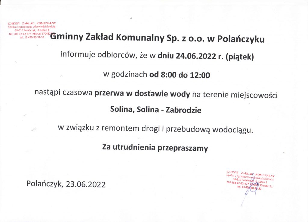 Obwieszczenie Wójta Gminy Solina z dnia 24 stycznia 2025 r.