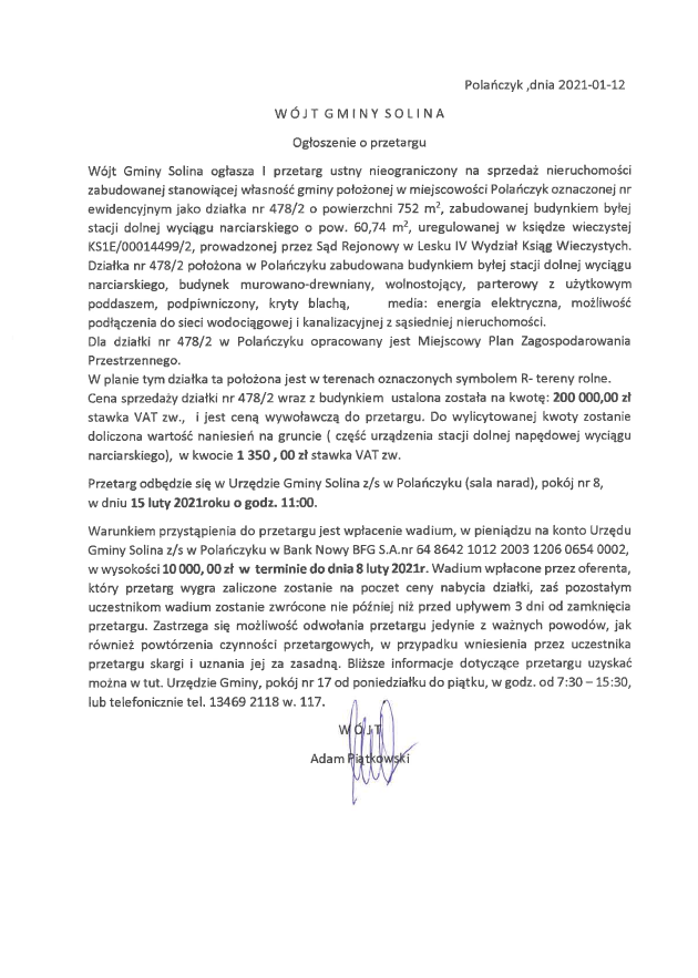 Obwieszczenie Wójta Gminy Solina z dnia 24 stycznia 2025 r.