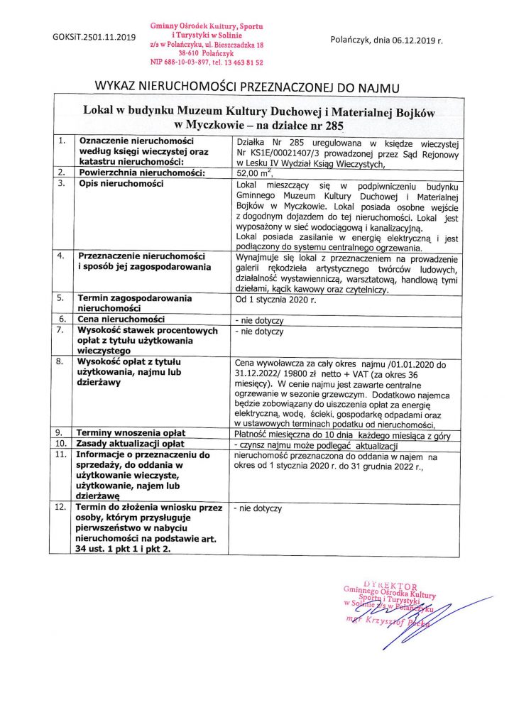 Gmina Solina Ogłoszenia Wykaz nieruchomości przeznaczonej do najmu
